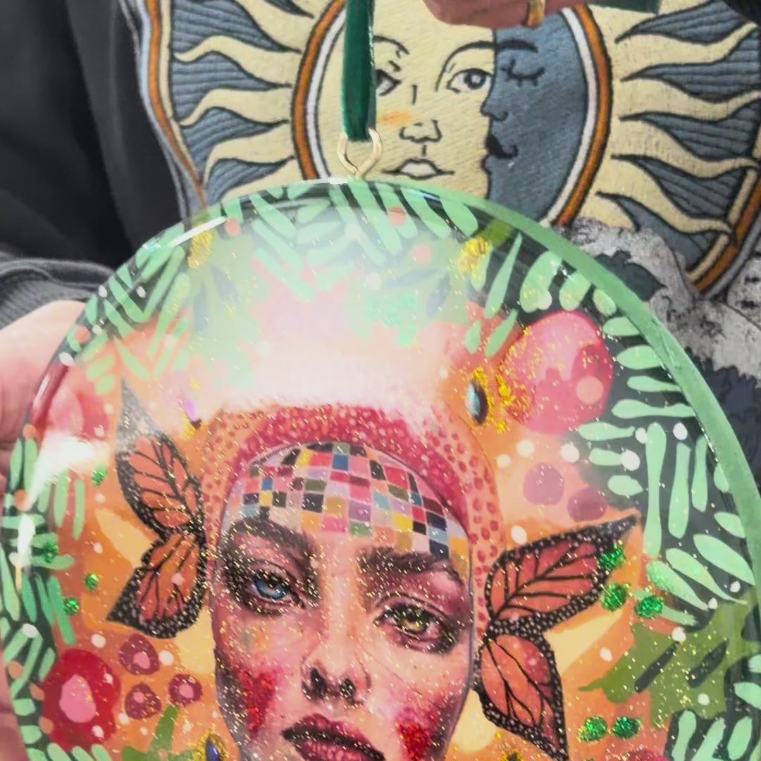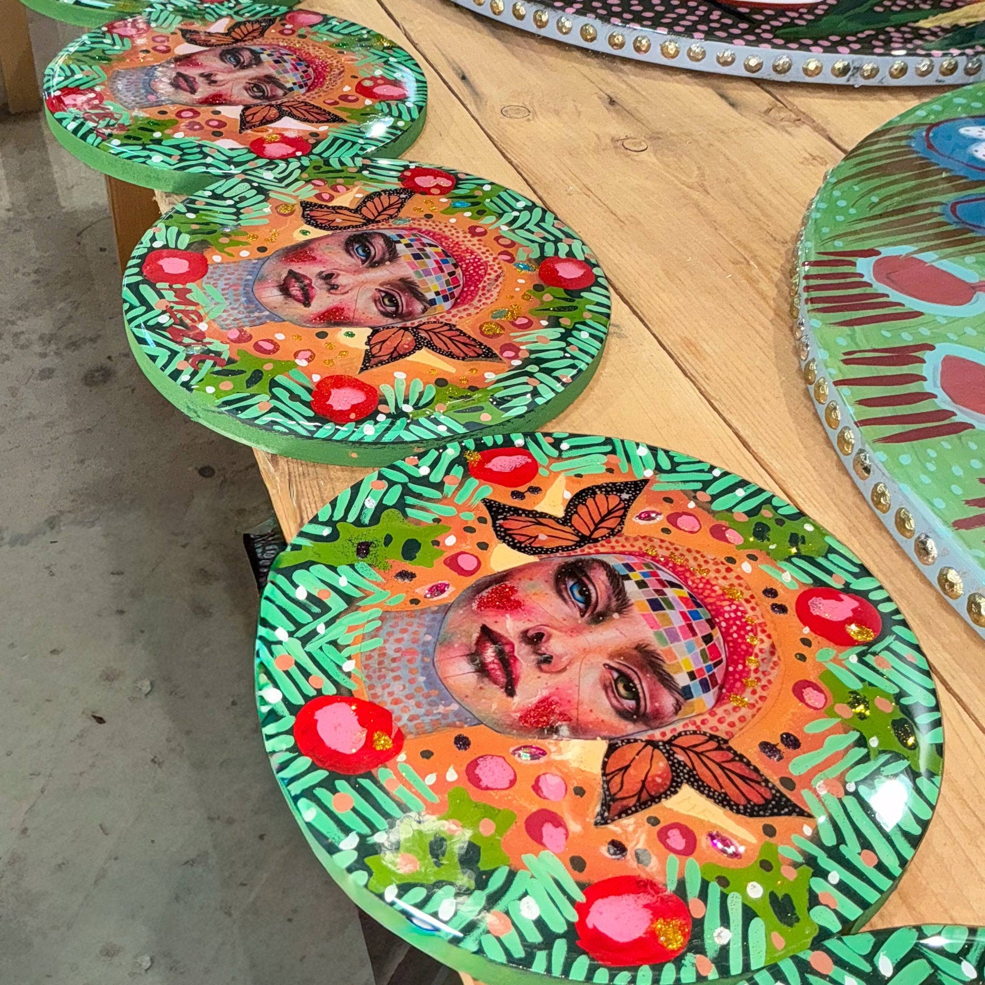 A 2ocm hand-painted resin artwork on solid wood by Mariana Mezic. Each piece is individually crafted using mixed media techniques.